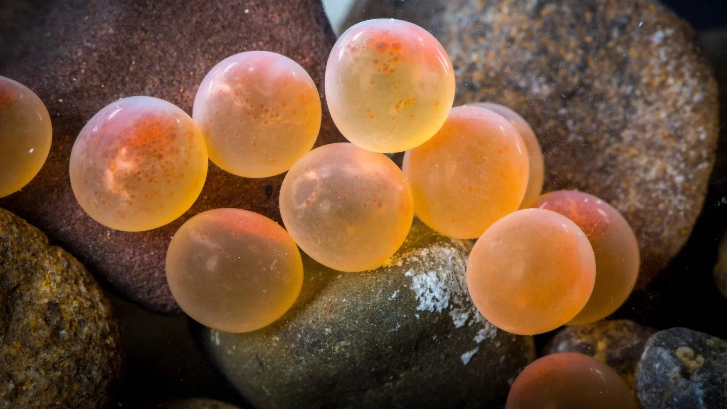 In clear water, match the hatch with a natural tone, such as a translucent orange or peach color. Translucent or “see-through” beads allow light to pass through them, creating more of an illusion of a fresh, natural egg.
